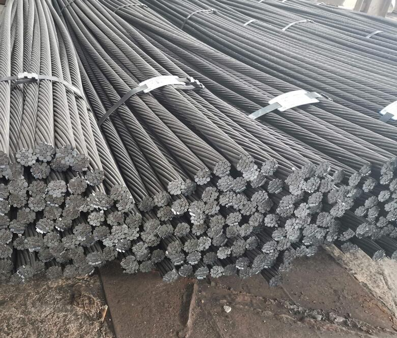 預應力混凝土鋼絞線。預應力鋼絞線是由2、3、7或19根高強度鋼絲構成的絞合鋼纜,并經消除應力處理(穩定化處理),適合預應力混凝土及類似用途。預應力鋼絞線的主要特點是強度高和松弛性能好,另外展開時較挺直。常見抗拉強度等級為1860兆帕,還有1720、1770、1960、2000、2160、2230、2360兆帕之類的強度等級。這種鋼材的屈服強度也很高。